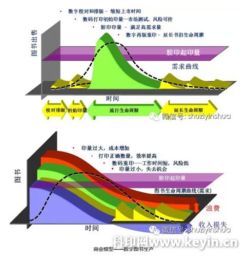針對這個問題,數(shù)碼印刷就可以很好地解決。過去很多從業(yè)者認(rèn)為數(shù)碼印刷在出版領(lǐng)域能做的事就是印刷小批量(1000冊以下)的圖書。這類書往往是專業(yè)的、特別制作、小眾市場的圖書,但實際上,這只是數(shù)碼印刷能做的很小一部分。數(shù)碼印刷能做的更多的事情是什么?就是和傳統(tǒng)印刷結(jié)合在一起,幫助出版社在整個圖書生命周期內(nèi)承擔(dān)作用,減少庫存。在圖書生命周期的初始階段,可以應(yīng)用數(shù)碼印刷來印制,而在圖書暢銷周期內(nèi)可以利用傳統(tǒng)印刷來做,后期的延長生命周期階段還是要用數(shù)碼印刷來做。